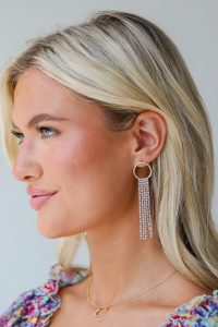 Let your cute side show whenever you wear a sweet piece like the Maeve Gold Rhinestone Fringe Earrings! These trendy earrings start with a circle stud post back and fall to colorful rhinestone fringe chains. Add these fun earrings to a black dress + heels to add a chic touch to your date night look! Gold Plated Rhinestones Fringe Stud Post BackOne Size | Length 3”